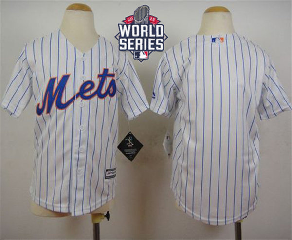 Mets Blank White(Blue Strip) Home Cool Base W/2015 World Series Patch Stitched Youth MLB Jersey