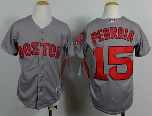 Red Sox #15 Dustin Pedroia Grey Cool Base Stitched Youth MLB Jersey