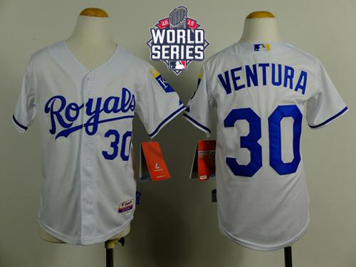 Royals #30 Yordano Ventura White Cool Base W/2015 World Series Patch Stitched Youth MLB Jersey