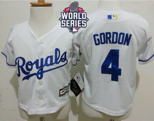 Toddler Royals #4 Alex Gordon White Cool Base W/2015 World Series Patch Stitched MLB Jersey