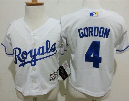 Toddler Royals #4 Alex Gordon White Cool Base Stitched MLB Jersey