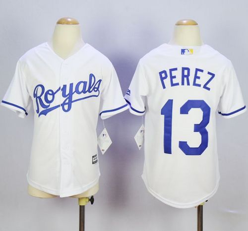 Royals #13 Salvador Perez White Cool Base Stitched Youth MLB Jersey