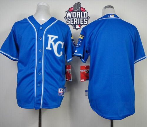 Royals Blank Blue Cool Base W/2015 World Series Patch Stitched Youth MLB Jersey