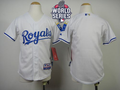 Royals Blank White Cool Base W/2015 World Series Patch Stitched Youth MLB Jersey