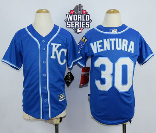Royals #30 Yordano Ventura Blue Cool Base W/2015 World Series Patch Stitched Youth MLB Jersey