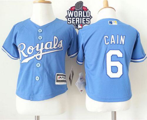Toddler Royals #6 Lorenzo Cain Light Blue Alternate 1 Cool Base W/2015 World Series Patch Stitched MLB Jersey