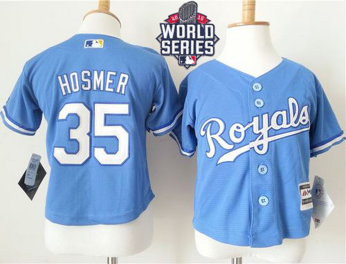Toddler Royals #35 Eric Hosmer Light Blue Alternate 1 Cool Base W/2015 World Series Patch Stitched MLB Jersey