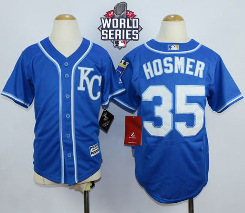 Royals #35 Eric Hosmer Blue Alternate 2 Cool Base W/2015 World Series Patch Stitched Youth MLB Jersey