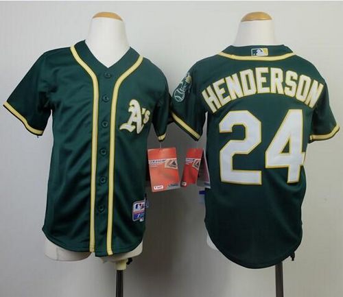 Athletics #24 Rickey Henderson Green Cool Base Stitched Youth MLB Jersey