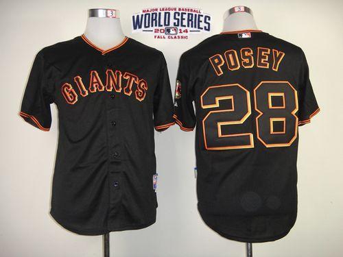 Giants #28 Buster Posey Black W/2014 World Series Patch Stitched Youth MLB Jersey