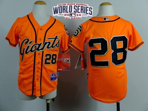 Giants #28 Buster Posey Orange W/2014 World Series Patch Stitched Youth MLB Jersey