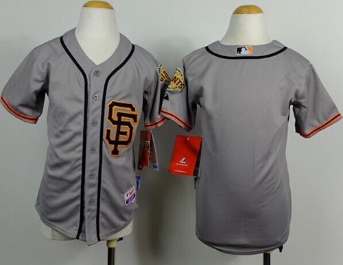 Giants Blank Grey Road 2 Cool Base W/2014 World Series Patch Stitched Youth MLB Jersey
