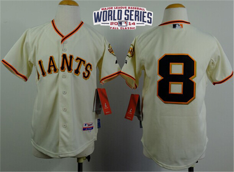 Giants #8 Hunter Pence Cream W/2014 World Series Patch Stitched Youth MLB Jersey
