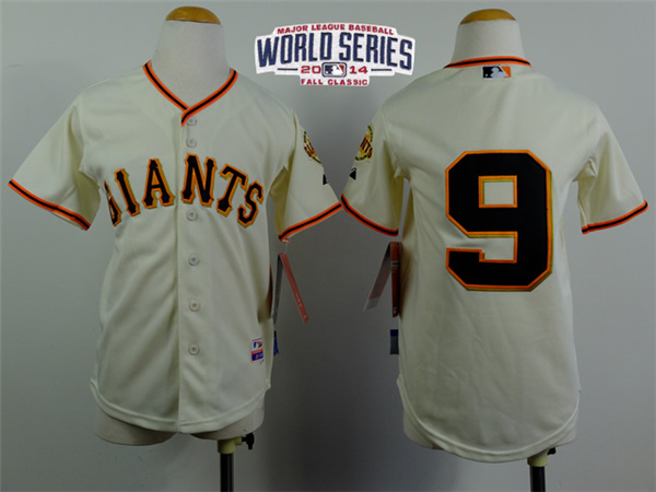 Giants #9 Brandon Belt Cream W/2014 World Series Patch Stitched Youth MLB Jersey