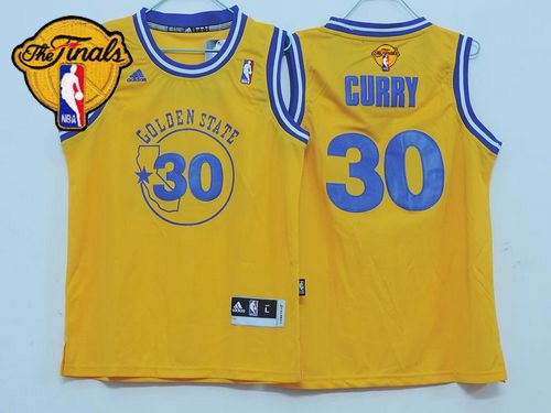 Warriors #30 Stephen Curry Gold Throwback The Finals Patch Stitched Youth NBA Jersey