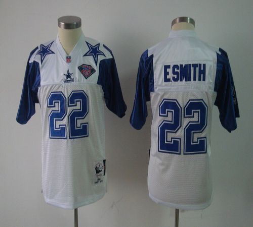Mitchell And Ness Cowboys #22 E.Smith White With 75TH Stitched Youth NFL Jersey