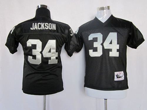 Mitchell And Ness Raiders #34 Bo Jackson Black Stitched Youth NFL Jersey