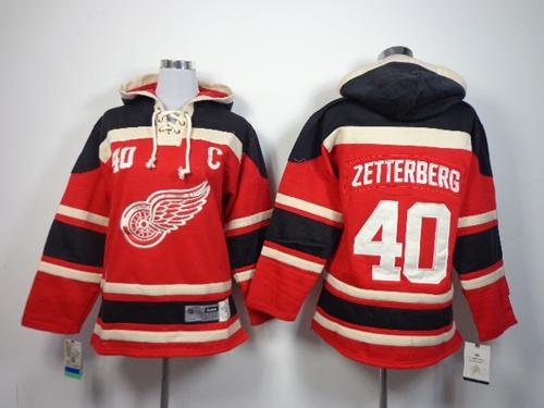 Red Wings #40 Henrik Zetterberg Red Sawyer Hooded Sweatshirt Stitched Youth NHL Jersey