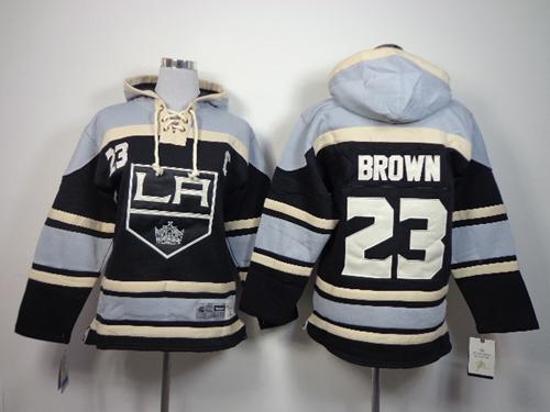 Kings #23 Dustin Brown Black Sawyer Hooded Sweatshirt Stitched Youth NHL Jersey