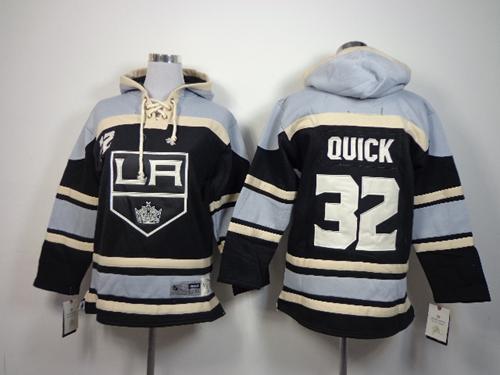 Kings #32 Jonathan Quick Black Sawyer Hooded Sweatshirt Stitched Youth NHL Jersey