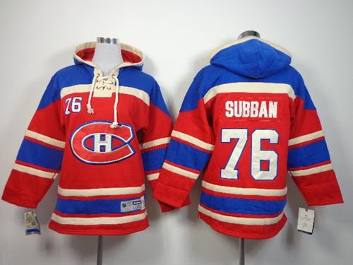 Canadiens #76 P.K Subban Red Sawyer Hooded Sweatshirt Stitched Youth NHL Jersey