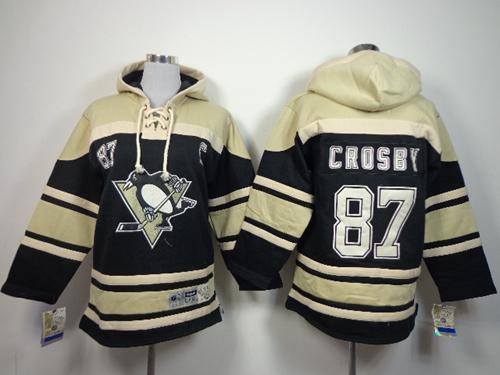 Penguins #87 Sidney Crosby Black Sawyer Hooded Sweatshirt Stitched Youth NHL Jersey