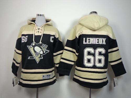 Penguins #66 Mario Lemieux Black Sawyer Hooded Sweatshirt Stitched Youth NHL Jersey
