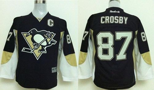 Penguins #87 Sidney Crosby Stitched Black Youth NHL Jersey
