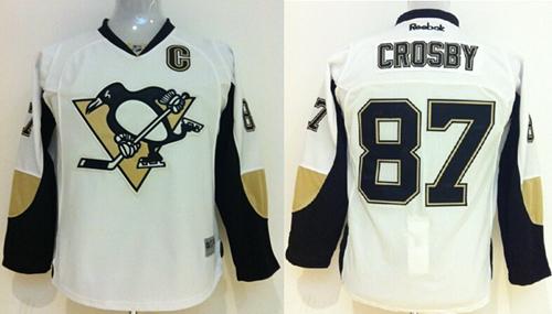 Penguins #87 Sidney Crosby White Stitched Youth NHL Jersey