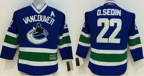 Canucks #22 Daniel Sedin Blue Stitched Youth NHL Jersey