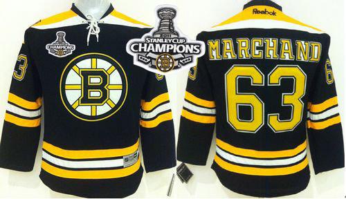 Bruins #63 Brad Marchand 2011 Stanley Cup Champions Patch Black Stitched Youth NHL Jersey
