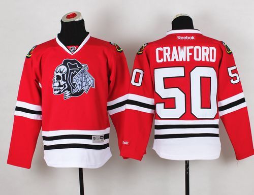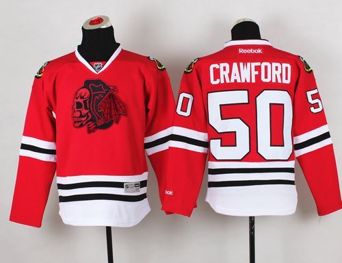 Blackhawks #50 Corey Crawford Red(Red Skull) Stitched Youth NHL Jersey