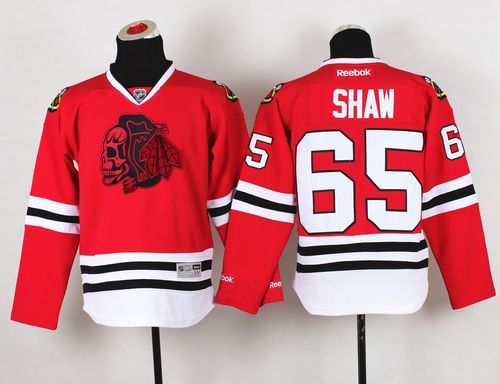Blackhawks #65 Andrew Shaw Red(White Skull) Stitched Youth NHL Jersey