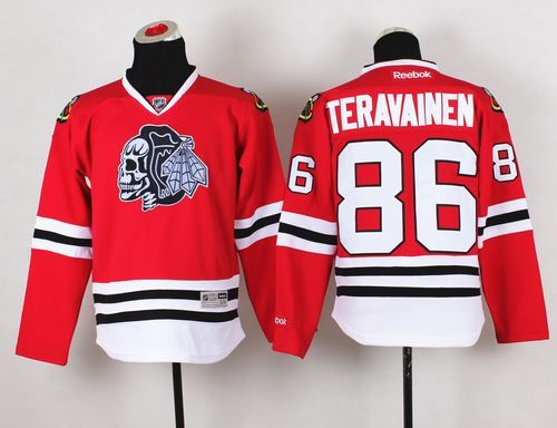 Blackhawks #86 Teuvo Teravainen Red(White Skull) Stitched Youth NHL Jersey
