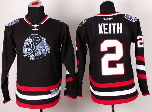 Blackhawks #2 Duncan Keith Black(White Skull) 2014 Stadium Series Stitched Youth NHL Jersey
