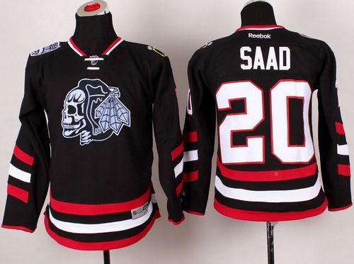 Blackhawks #20 Brandon Saad Black(White Skull) 2014 Stadium Series Stitched Youth NHL Jersey