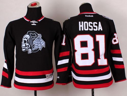 Blackhawks #81 Marian Hossa Black(White Skull) 2014 Stadium Series Stitched Youth NHL Jersey