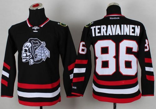 Blackhawks #86 Teuvo Teravainen Black(White Skull) 2014 Stadium Series Stitched Youth NHL Jersey