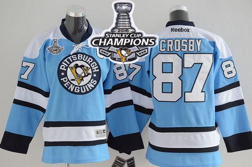 Penguins #87 Sidney Crosby Blue 2016 Stanley Cup Champions Stitched Youth NHL Jersey