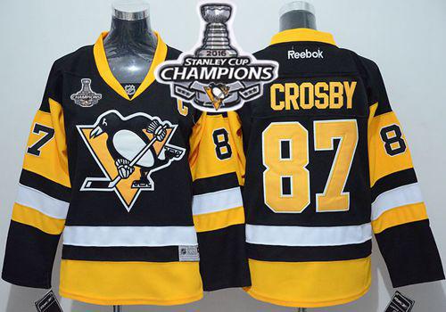 Penguins #87 Sidney Crosby Black 2016 Stanley Cup Champions Stitched Youth NHL Jersey