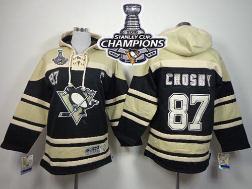 Penguins #87 Sidney Crosby Black Sawyer Hooded Sweatshirt 2016 Stanley Cup Champions Stitched Youth NHL Jersey