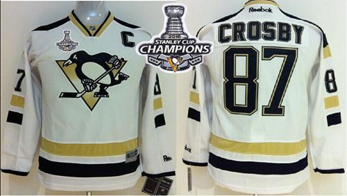 Penguins #87 Sidney Crosby White 2016 Stanley Cup Champions Stitched Youth NHL Jersey