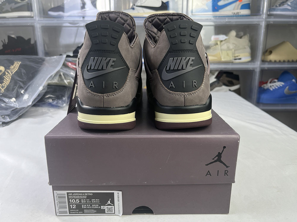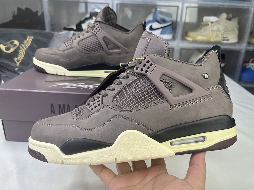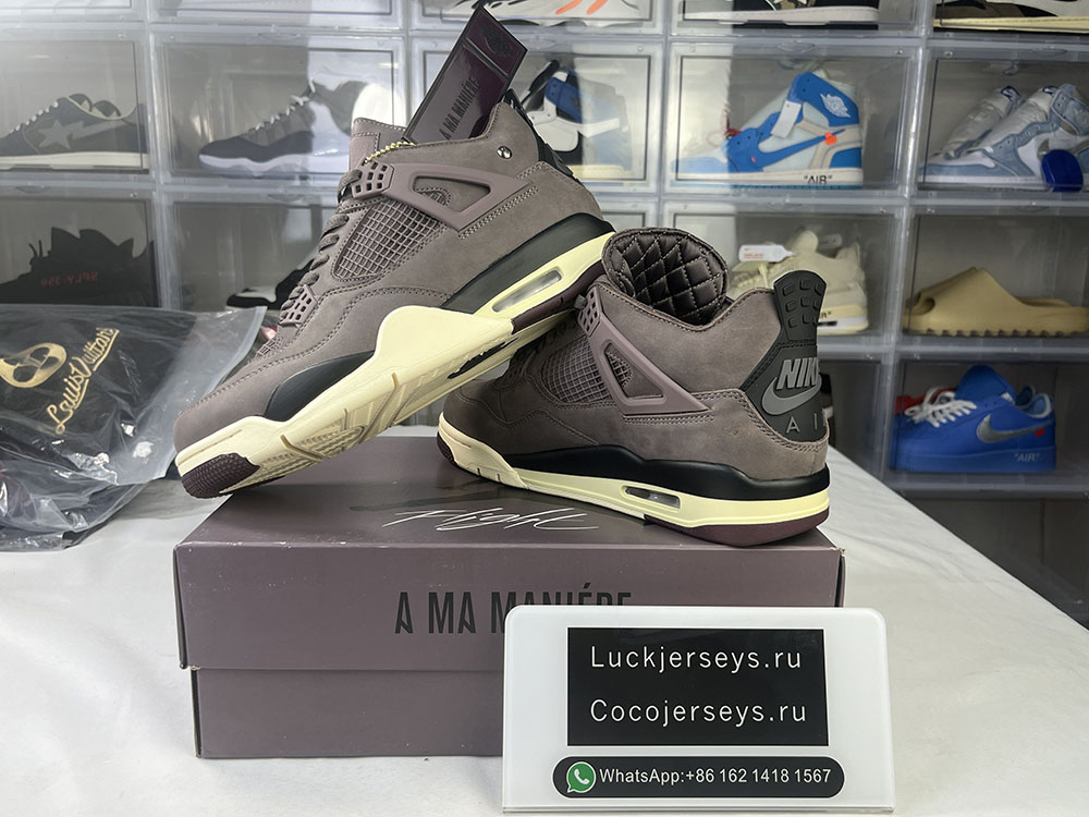 Dressed in violet ore, medium grey, black, Maslin and Burgundy crushed color schemes. A Ma Maniere x Air Jordan 4 is expected to have a soft purple base with a cream rubber sole.