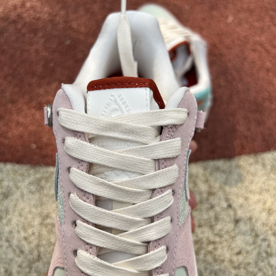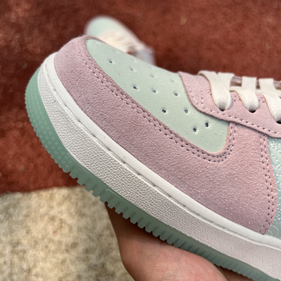 The Nike AF1 DQ5361 Women's Sneaker features suede overlays with a swirl-like pattern at the center of the tongue and sockliner. Emerald green accents are featured on the upper and outsole, with three emerald motifs on the side heel. The sole is made of rubber for improved grip.