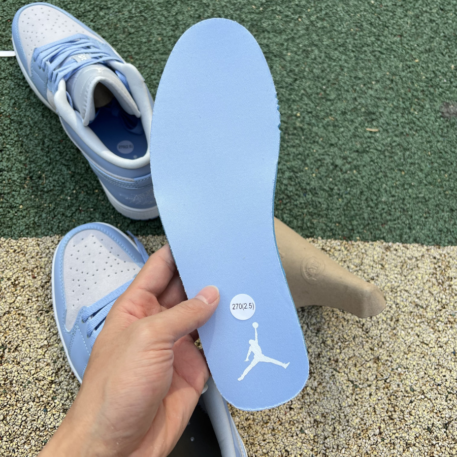 The light gray shoe body is matched with the light blue shoe body frame, which presents a very fresh visual experience as a whole, which is very suitable for summer feet. Made of suede and leather, the shoe body is more layered. Finally, a white midsole and light blue outsole complete the overall design.