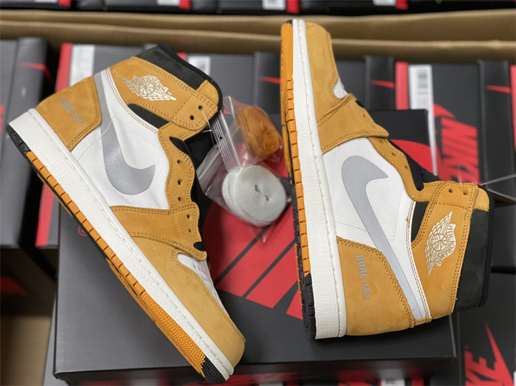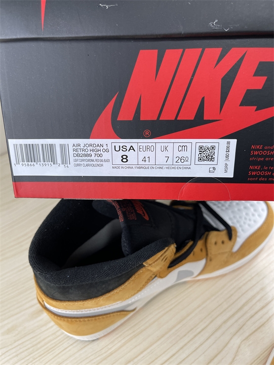 The overall body of the shoe is curry tone, with the red Air logo on the tongue as an embellishment, and the black and yellow color matching structure is more classic in terms of visual effect.