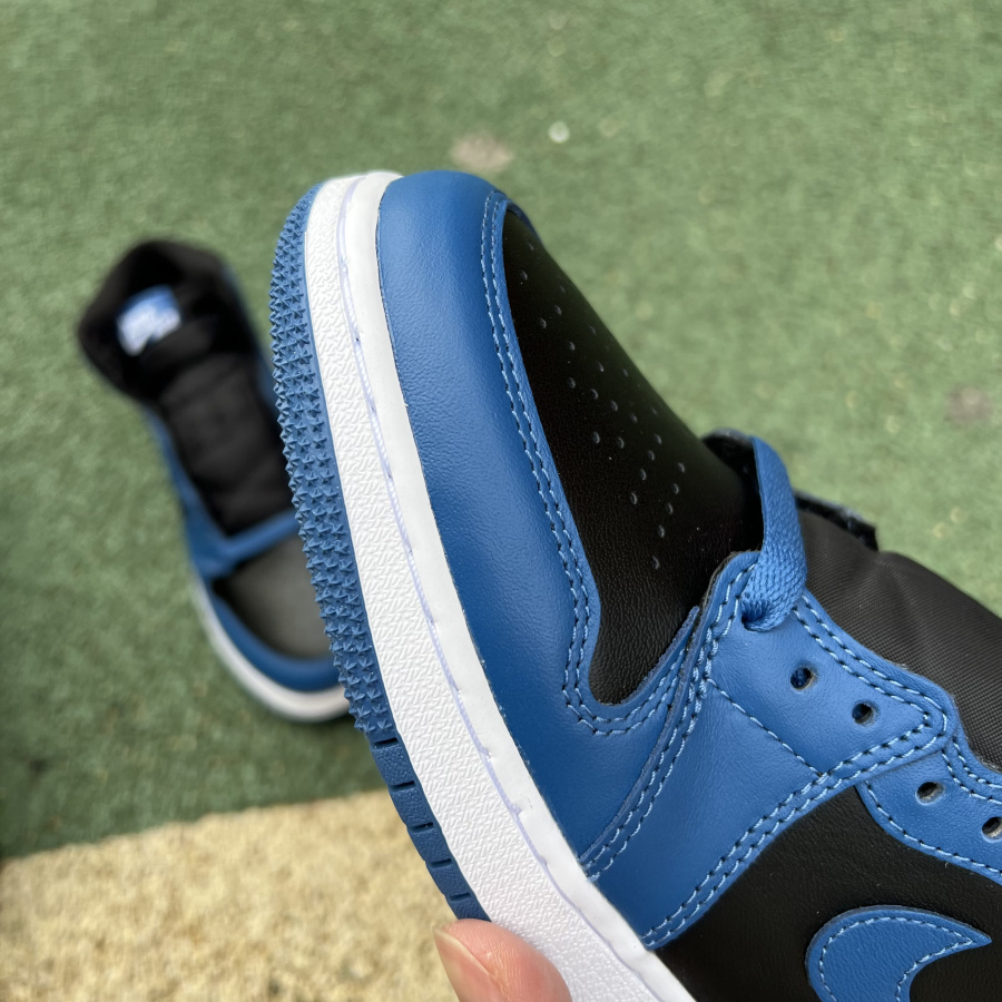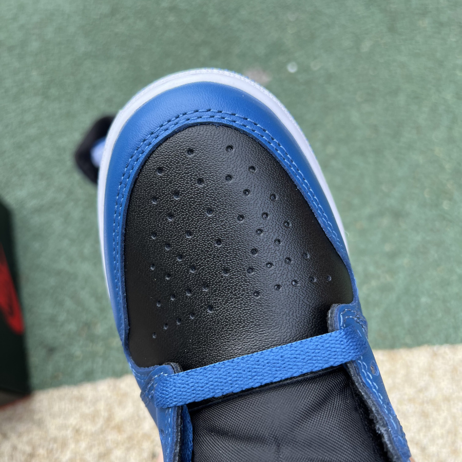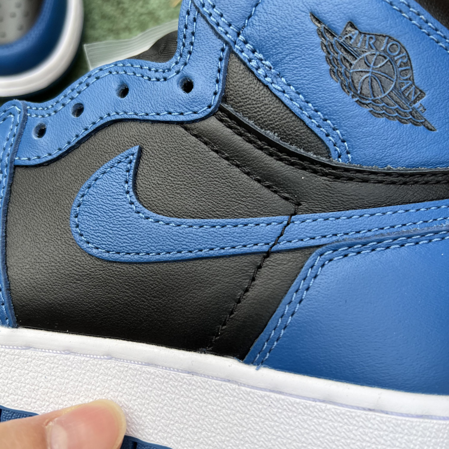 The overall tone of the shoes is blue and black, and the Swoosh on the side of the shoe and the wing logo on the upper are decorated with black. The simple color Air Jordan 1 is often more popular with everyone. It is matched with a simple and fire blue blessing. The upper foot effect is somewhat similar to the small lightning Air Jordan 1.