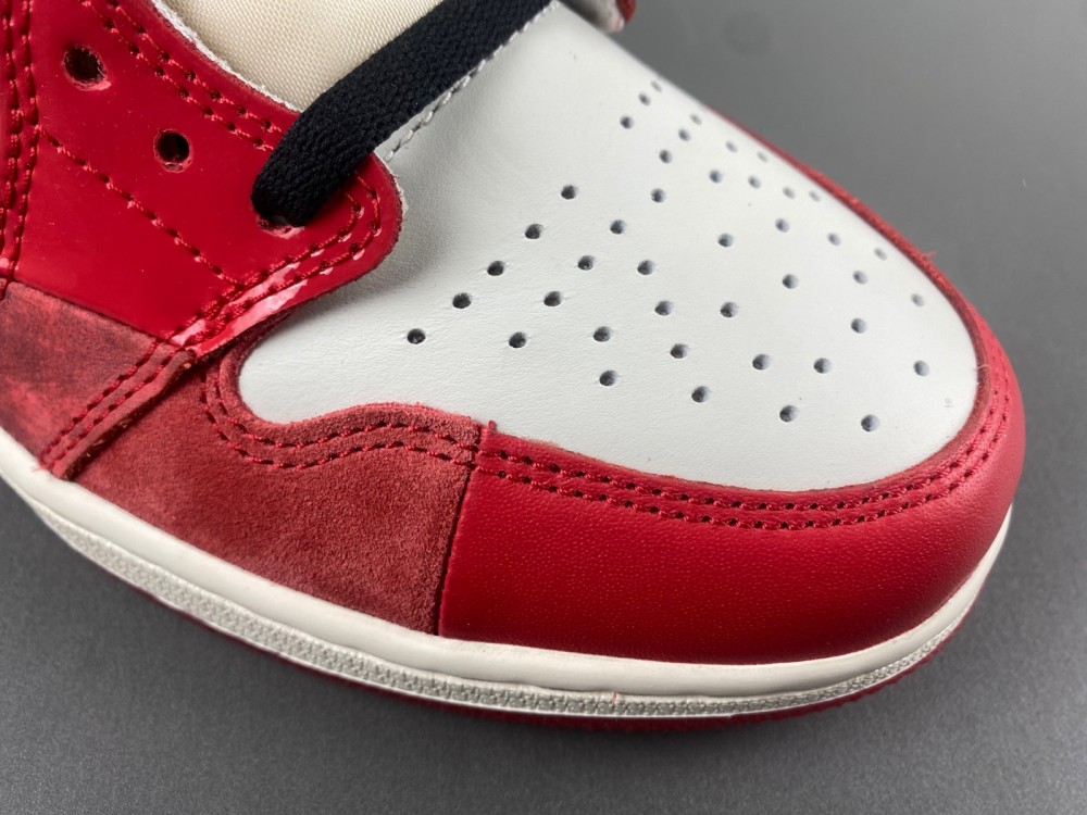 The upper is made of rich materials, which visually caters to the Spider-Man movie, and the details have a reflective 3D effect. In addition, it echoes the constantly switching pop-style scenes in the movie. The shoe frame has polka dot elements to reflect the concept of a parallel world. The materials are diversified,including suede, patent leather and top-layer cowhide. The shoes are based on the Chicago color scheme, and the upper is spliced with leather, suede, patent leather and other fabrics. The shoe body uses the retro Chicago color scheme, which fits the universe setting of Spider-Man and is bolder than the first generation of polka dot design.