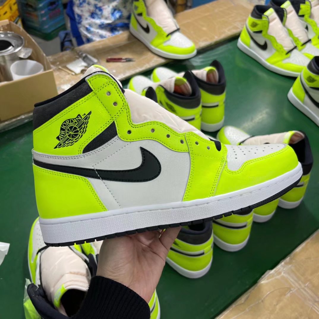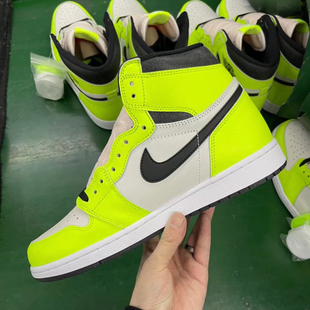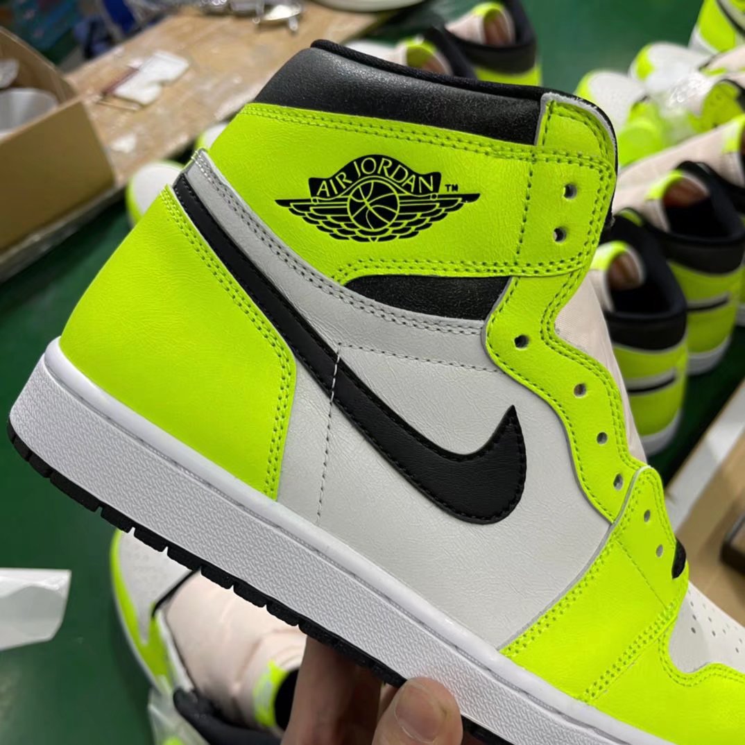 Jordan Air Jordan 1 High OG Volt Black Sail fluorescent green high-top sneakers 555088-702.