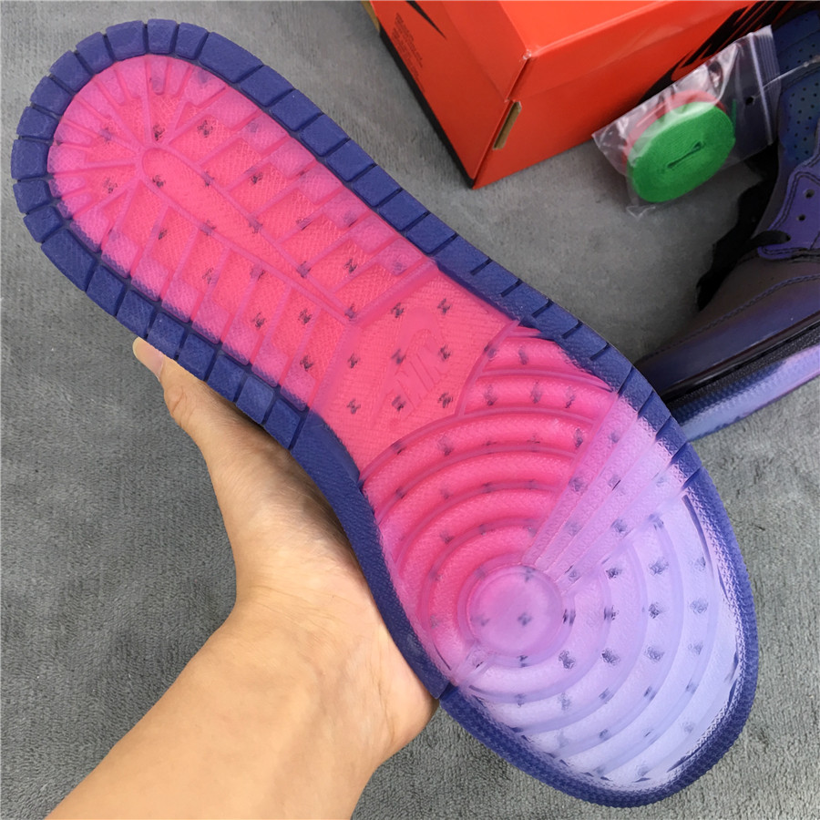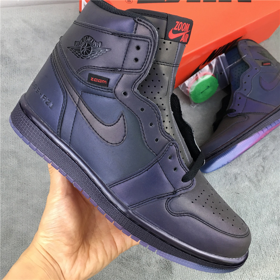 This Air Jordan 1 High Zoom R2T features a reflective material covering the entire upper.